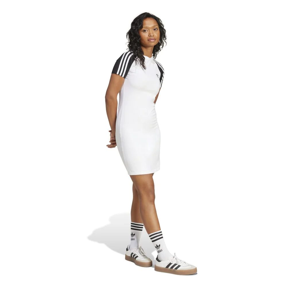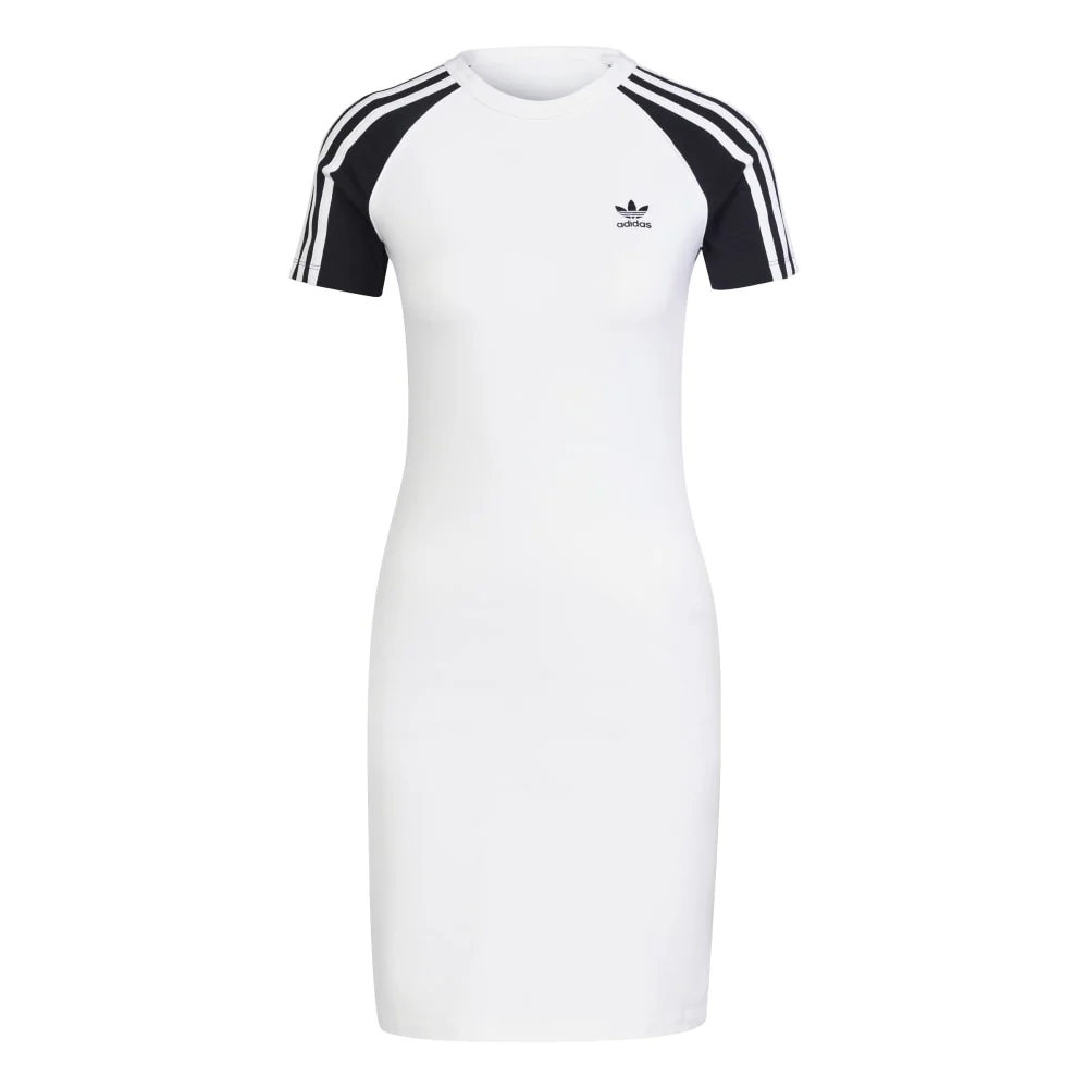 Abito Adidas 3S Raglan Dress in maglia fine altamente elasticizzata con composizione 93% Cotone e 7% Elastam. Il taglio aderente al corpo esalta la silhouette femminile, mentre l’elevata elasticità del tessuto garantisce massima libertà di movimento durante qualsiasi attività. Design Originals con dettagli raglan per uno stile sportivo e sofisticato.