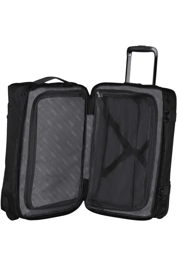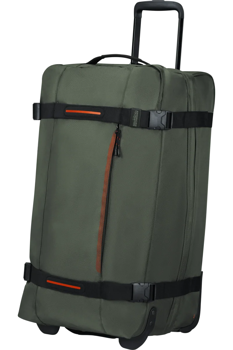 Nati per gli esploratori, i borsoni con ruote Urban Track trasportano comodamente i tuoi effetti personali su strada e fuori strada. La posizione verticale consente un supporto stabile quando il borsone è riempito. Non rinunciare all’organizzazione con la struttura a doppio comparto, il divisorio in rete e le cinghie elastiche incrociate nel comparto inferiore. All’esterno: chiusura TSA fissa a 3 cifre, ruote integrate, comode maniglie anteriori, cinghie di compressione e tasche frontali. Rifiniti con una targhetta con logo in metallo con finitura opaca, presentano carrello di traino nero e riportano sul fianco l’indicazione del volume. I tessuti interni ed esterni sono realizzati con bottiglie in PET riciclate. I borsoni Urban Track sono la scelta perfetta per ogni esploratore.