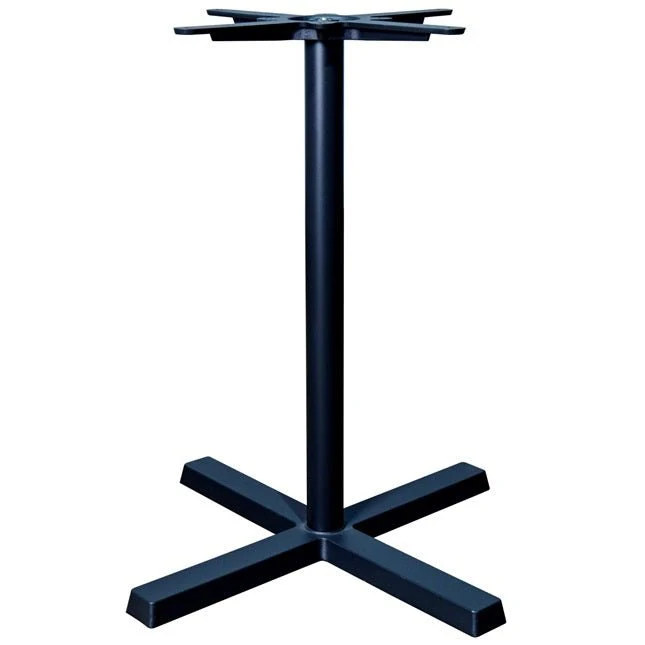 Base de mesa fabricada en hierro fundido con revestimiento en polvo negro, garantizando alta resistencia, estabilidad y durabilidad. Su diseño en forma de cruz proporciona un soporte firme y seguro para diferentes tipos de tableros.