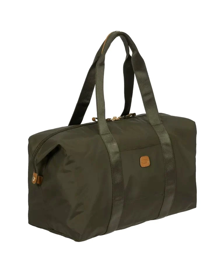 Il borsone 2 in 1 misura media della X-Collection è realizzato in morbido tessuto riciclato, leggero, robusto e impermeabile. La tasca interna con zip è staccabile e può diventare una pratica trousse o mini bag grazie alla tracollina in dotazione; è possibile inoltre riporre al suo interno l’intero borsone piegato. Le maniglie rendono il borsone portabile a mano o in spalla. Sul retro è presente una fascia per il fissaggio sulla maniglia del trolley. La forma capiente lo rende particolarmente funzionale. L’apertura principale è dotata di zip con doppio cursore. Impreziosito dai dettagli in vera pelle, segno distintivo di Bric’s.