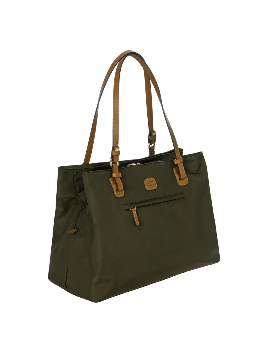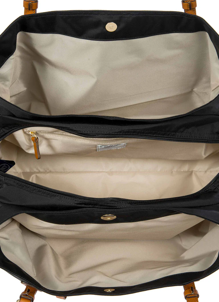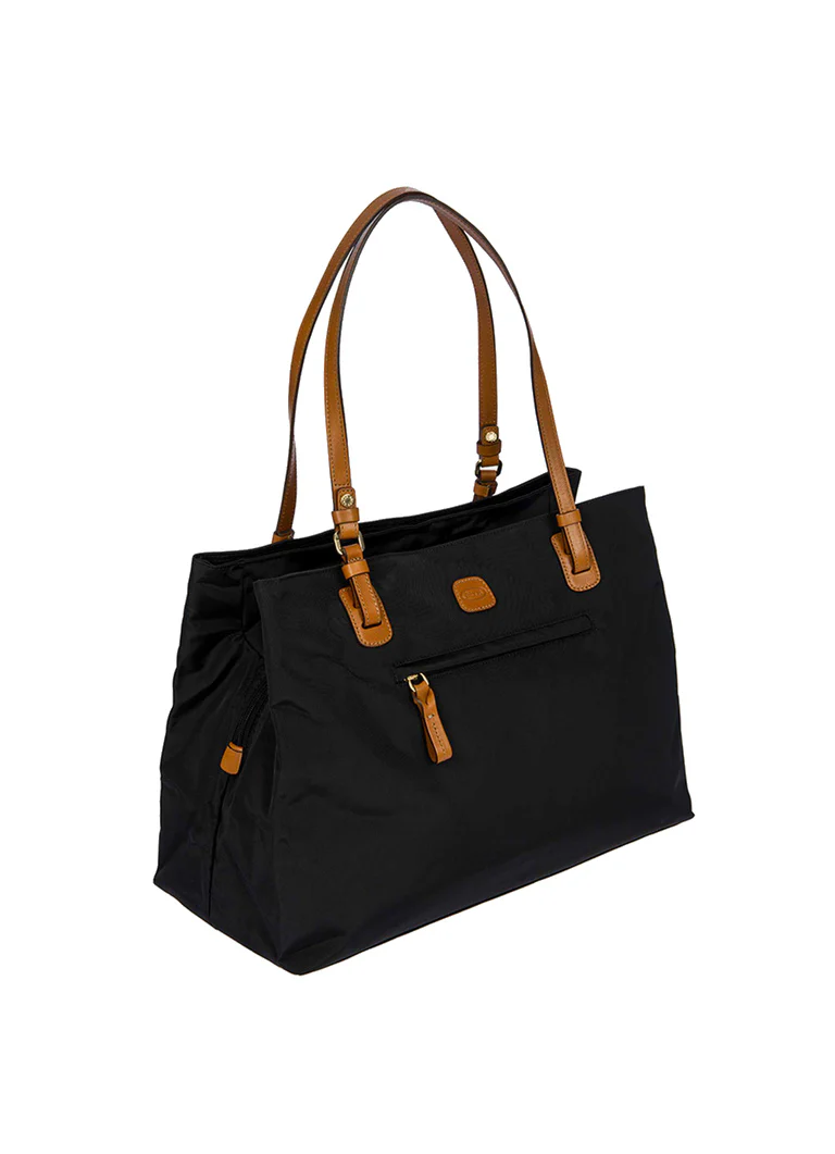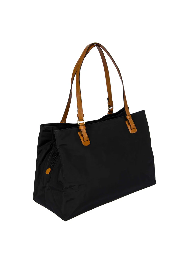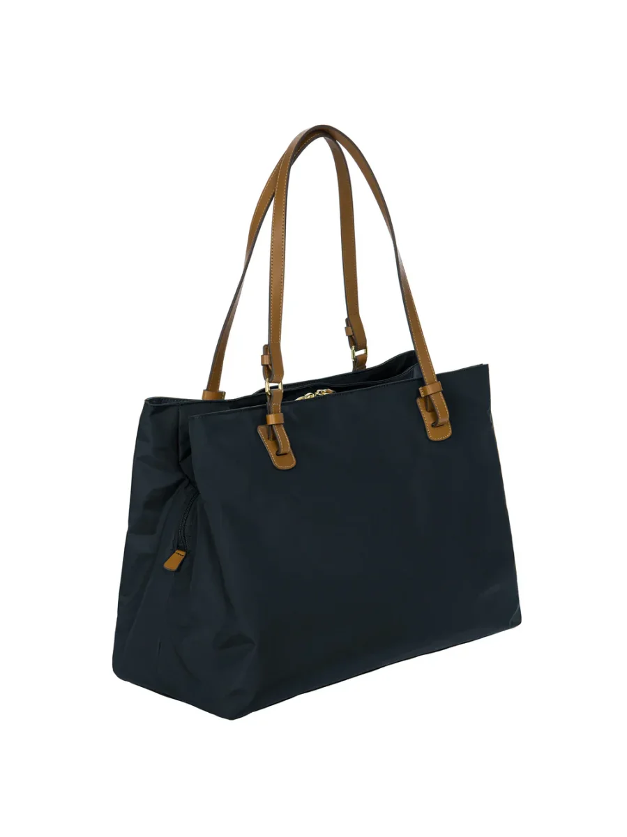 Borsa shopper grande della collezione X-Collection in nylon satinato con dettagli in pelle.