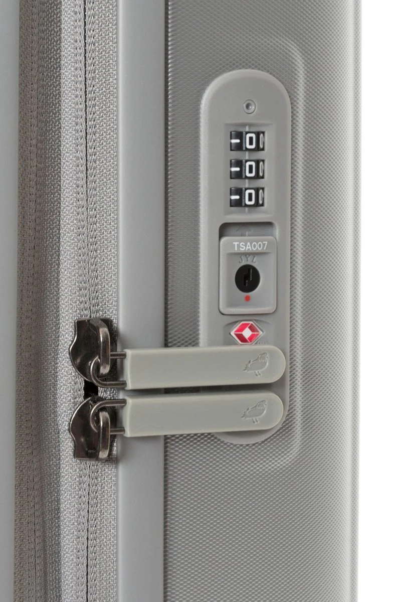 Trolley espansibile in policarbonato dal volume compatto e linee morbide. Presenta 4 doppie ruote in tono di colore che garantiscono migliore mobilità, protezioni d’urto in gomma personalizzate e piedini laterali antigraffio. La maniglia logata è appiattita in modo da non incrementare le dimensioni totali. Il TSA lock è posizionato sulla parte superiore per un accesso facilitato. Le grafiche interne sono rinnovate.