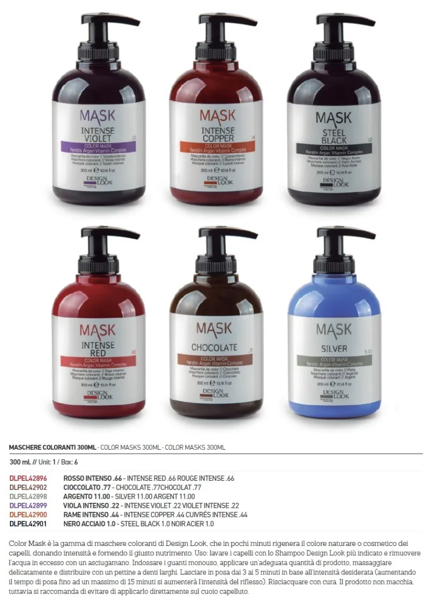 Color Mask è la gamma di maschere coloranti di Design Look, che in pochi minuti rigenera il colore naturare o cosmetico dei