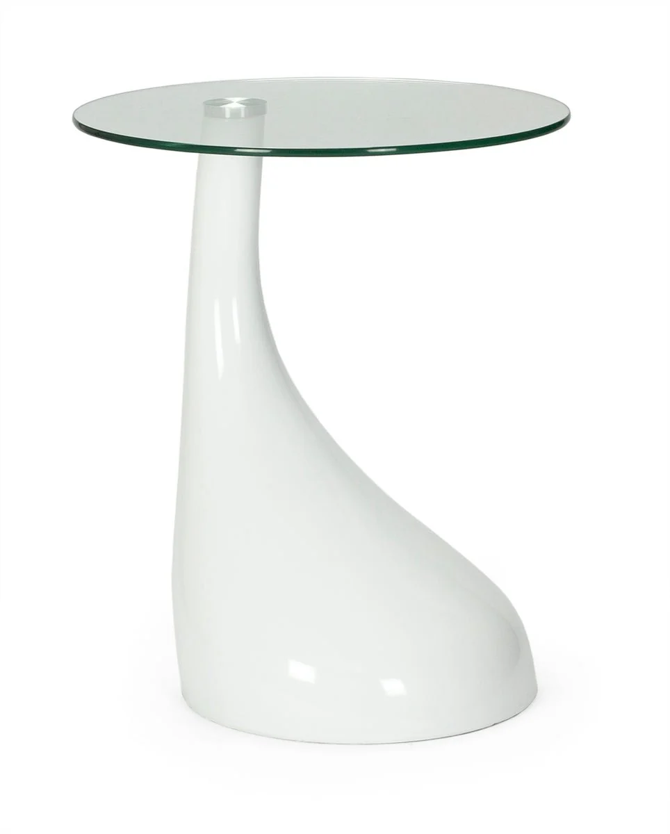 Mesa auxiliar de diseño fabricada con estructura ABS, lacado de color blanco y tapa de cristal templado de alta calidad.