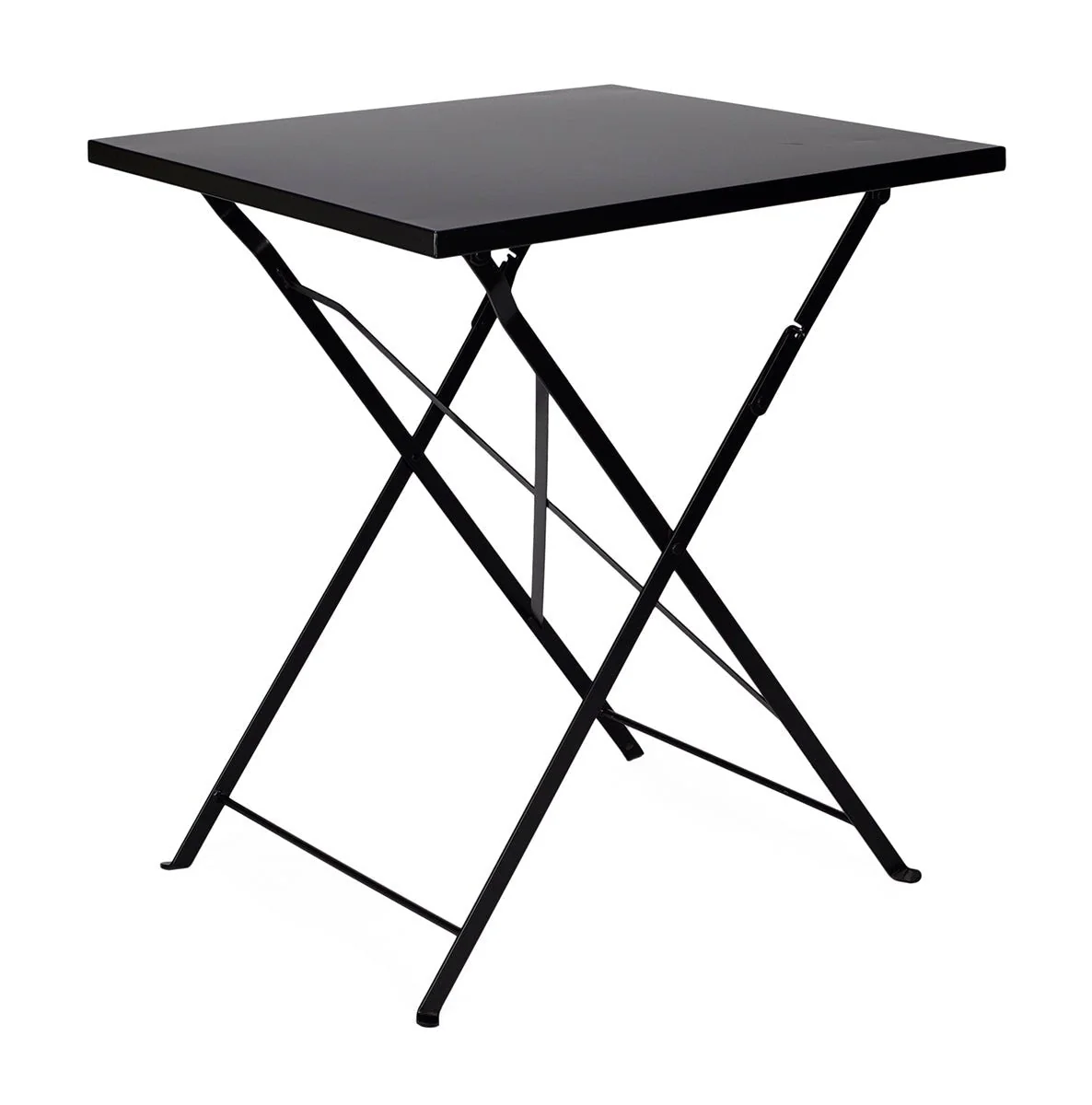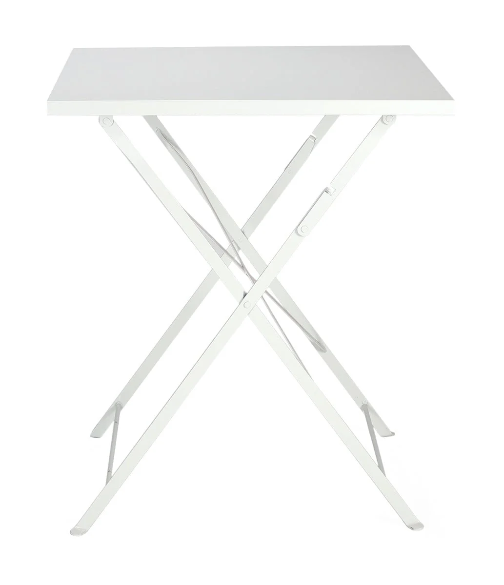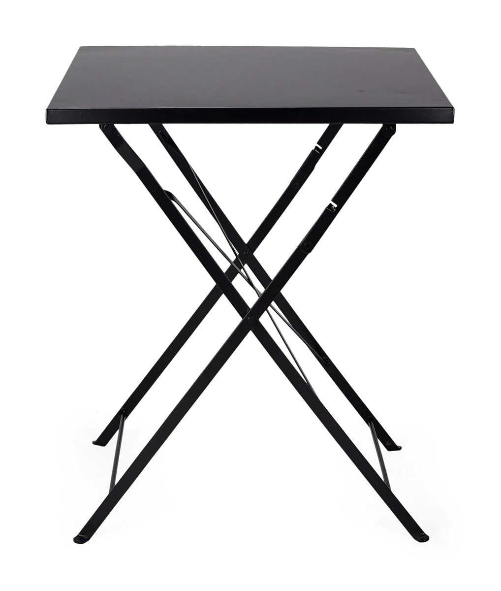 Mesa estilo Bistro plegable, fabricada con tablero de madera y estructura en acero lacado.