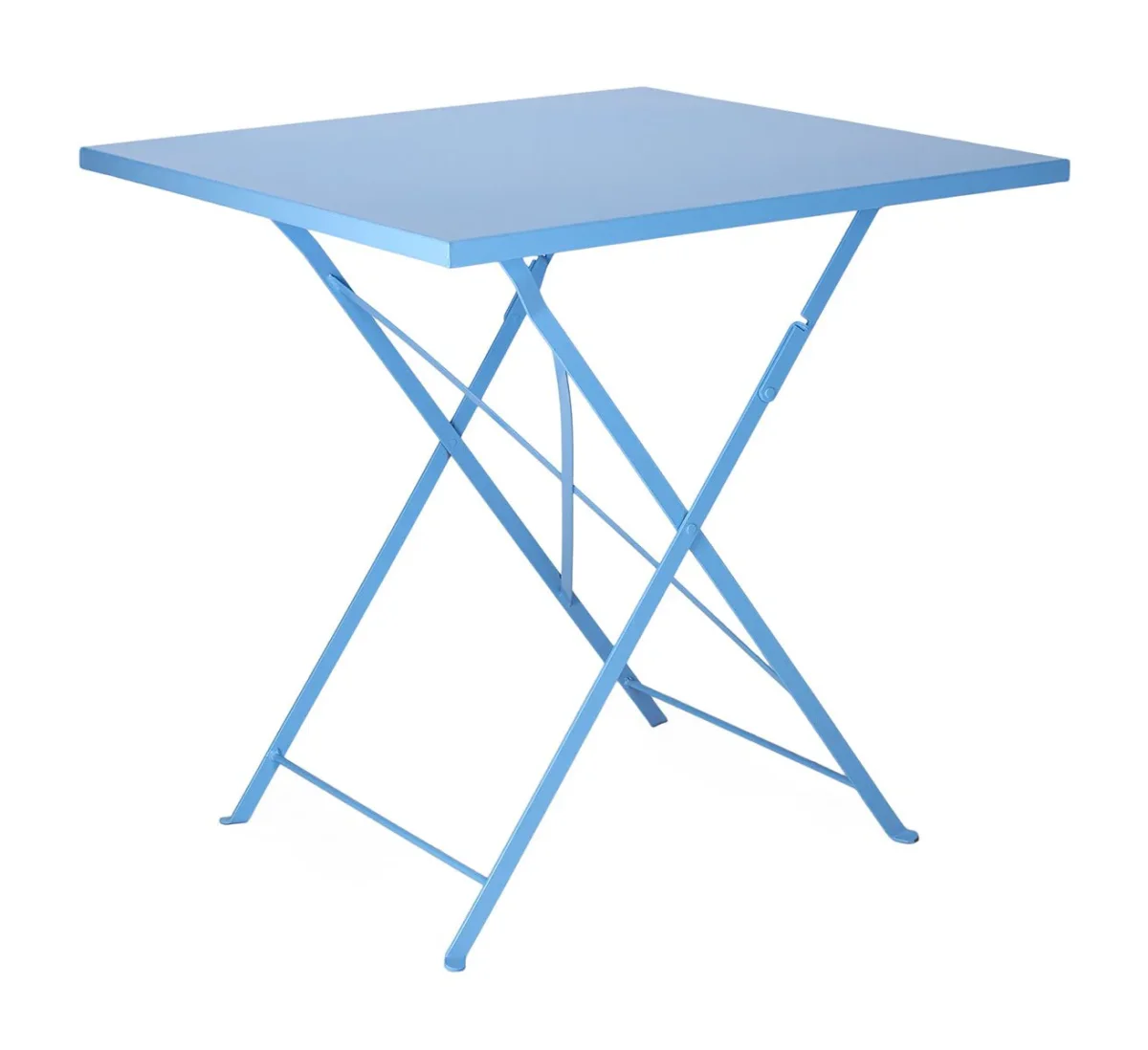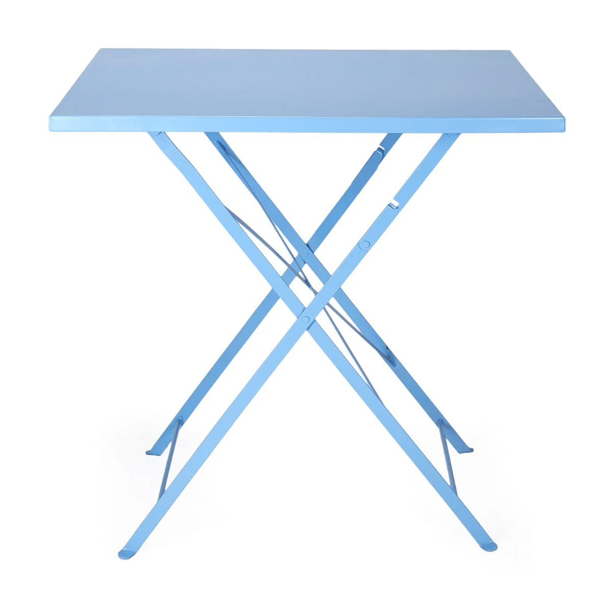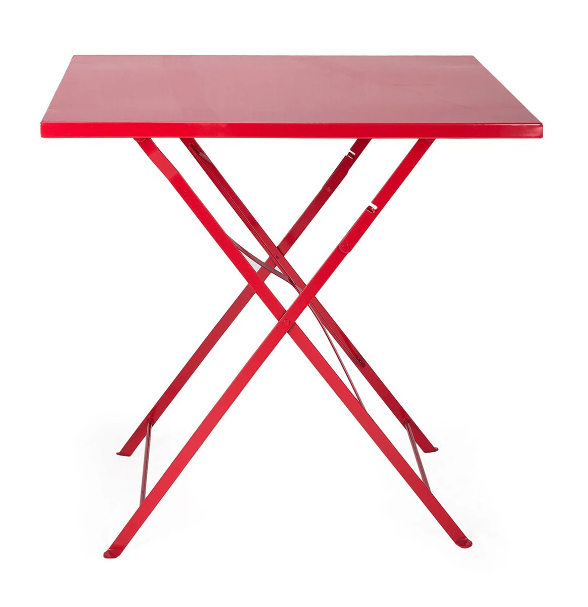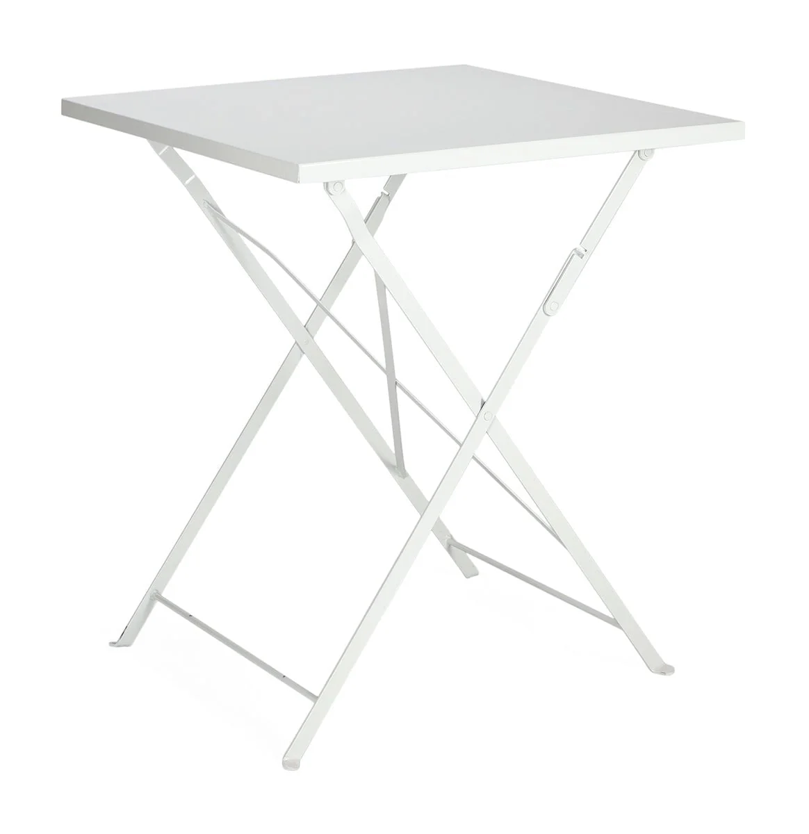 Mesa estilo Bistro plegable, fabricada con tablero de madera y estructura en acero lacado.