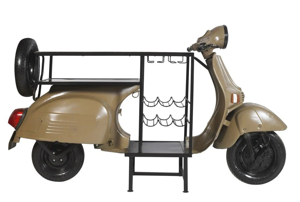 Encuentra en nuestro mostrador bar botellero scooter un elemento único con el que podrás decorar tu ambiente al mas puro estilo vintage e industrial.