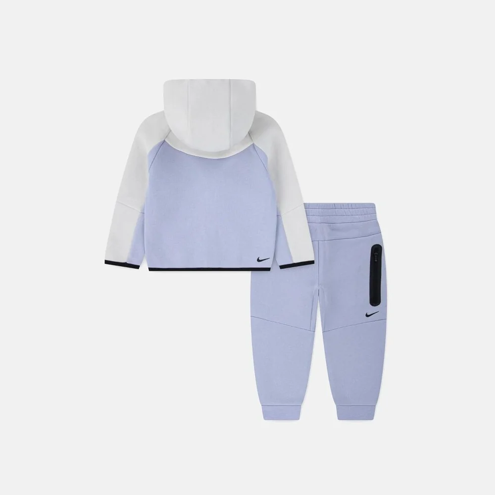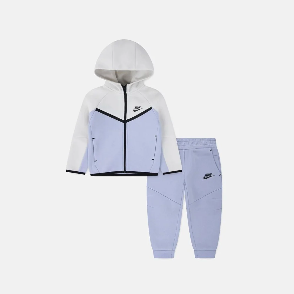 Il completo Nike Tech Fleece bianco e azzurro per bambino combina comfort e funzionalità in un design ispirato alla classica tuta da riscaldamento. Realizzato in tessuto jersey, include una felpa con cappuccio e zip integrale per una vestibilità facile da regolare. I pantaloni coordinati hanno un taglio affusolato, vita elasticizzata e polsini a coste, garantendo libertà di movimento e comfort durante l’attività sportiva. Ideale per la stagione autunno/inverno, questo set si abbina facilmente con altre proposte Nike per completare il look atletico dei più piccoli.