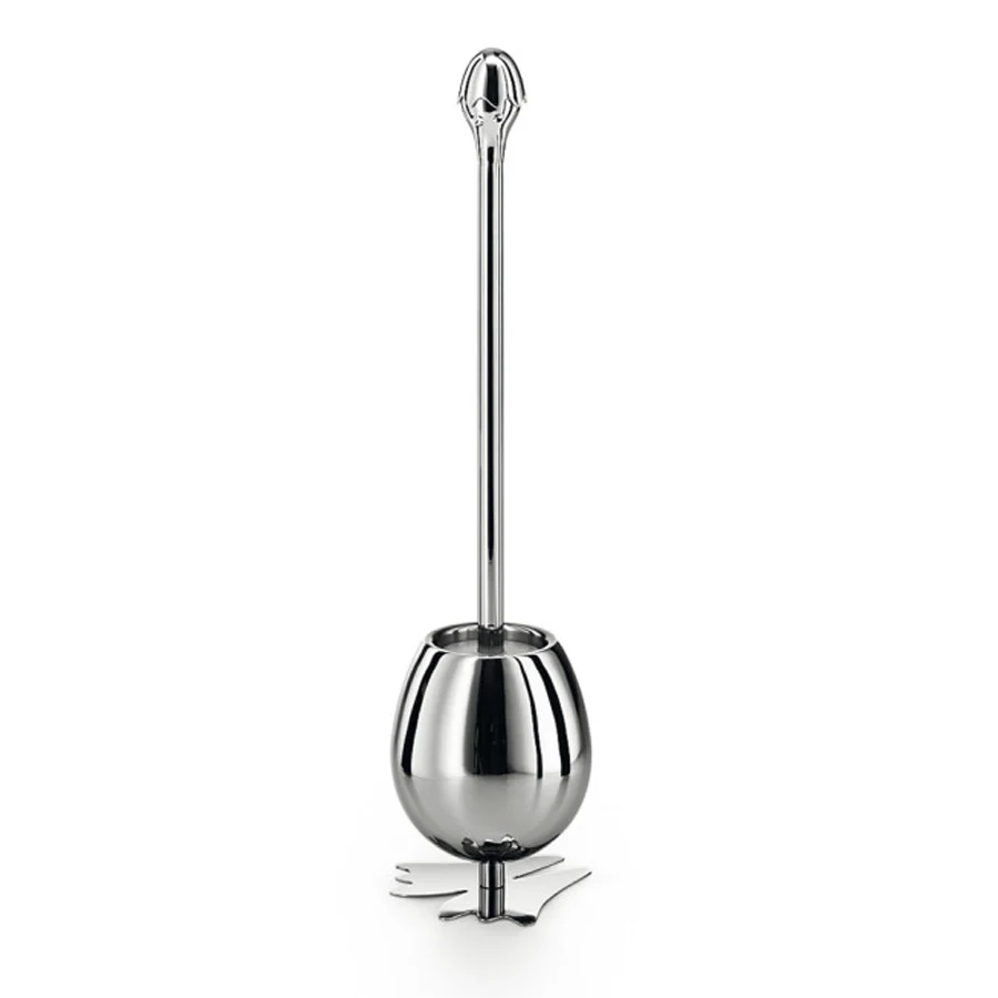 Portascopino ‘VOVO’ con scopino in acciaio inox lucido, parte della linea Balenghi di Lineabeta, incarna una raffinatezza senza tempo che eleva il bagno a una destinazione di design. Il corpo, modellato in acciaio inossidabile lucido, adotta una forma ovoidale che richiama una piccola scultura, perfettamente bilanciata tra estetica e funzione. La lavorazione esprime una maestria artigianale tipica di Balenghi, e la finitura cromata riflette la luce con sobria eleganza. Incluso nella confezione, lo scopino completa un set che celebra la qualità dei materiali e una grammatica formale destinata a durare nel tempo.