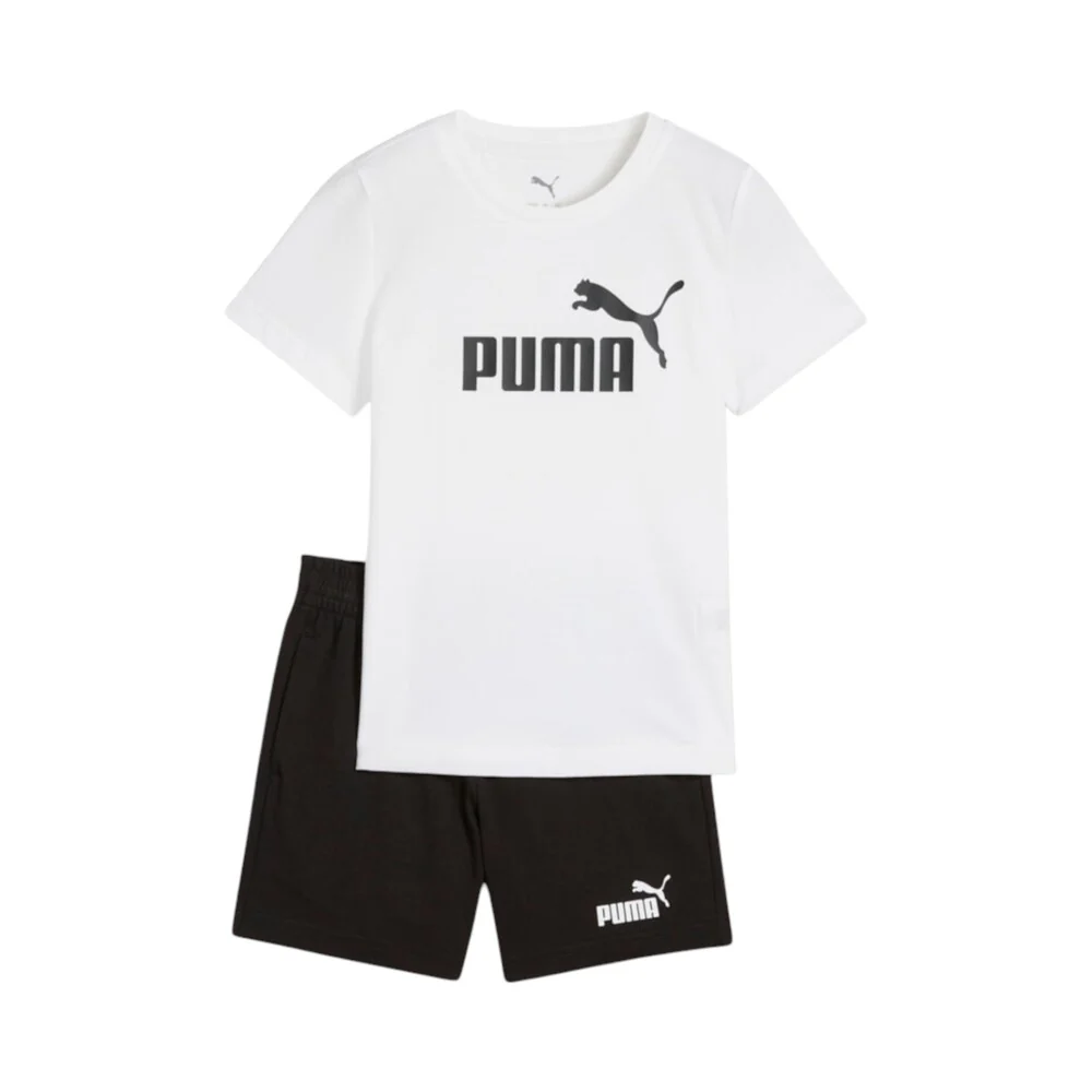 Questo completo Puma per bambino combina comfort e stile grazie alla composizione in 70% cotone e 30% cotone riciclato, che garantisce morbidezza e sostenibilità. La t-shirt presenta una stampa gommata con grafica PUMA e logo No. 1, abbinata a un girocollo a coste per una vestibilità ottimale. I pantaloncini completano il look con un’ulteriore stampa gommata del logo No. 1, ideali per momenti di gioco o per rilassarsi con comodità a casa.