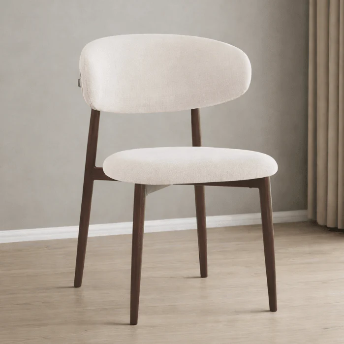 La silla presenta un diseño nórdico que se caracteriza por líneas limpias, formas simples y materiales naturales. El respaldo y el asiento están tapizados en un tejido anti manchas de alta calidad que no solo brinda un aspecto sofisticado, sino que también facilita la limpieza y el mantenimiento. Esto la convierte en una opción ideal para espacios donde se comparten comidas y pueden ocurrir derrames accidentales. Este tejido está probado por SGS cumplen con el estándar OEKO-tex 100, lo que significa que nuestros tejidos no contienen sustancias nocivas y están en armonía con el medio ambiente.