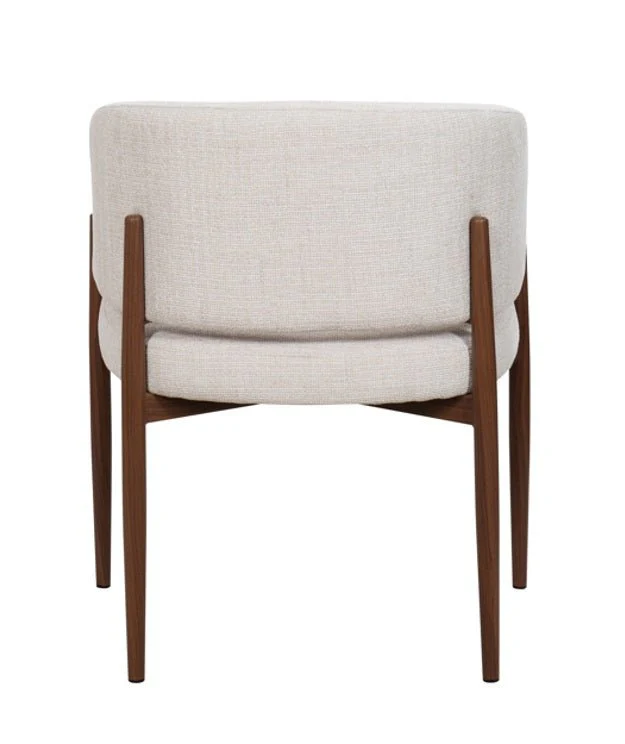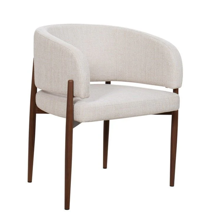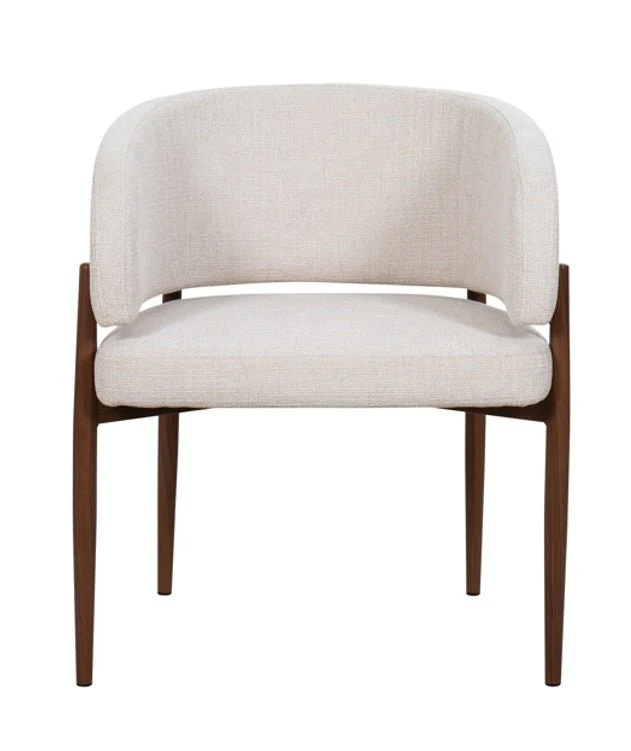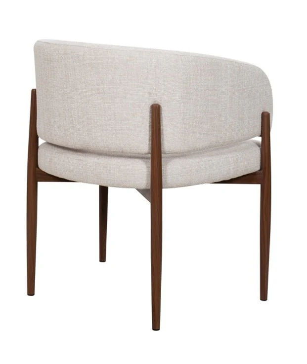 Disfruta del equilibrio perfecto entre elegancia y comodidad con este sofisticado sillón de comedor. Su armazón de acero con un acabado en color nogal aporta un toque cálido y moderno a cualquier espacio. Diseñado para ofrecer un gran confort, cuenta con un respaldo amplio de diseño redondeado que se adapta perfectamente a la forma del cuerpo, mientras que sus brazos acolchados brindan un soporte adicional. El tapizado en tela de alta calidad asegura durabilidad y estilo, haciendo de este sillón la elección ideal para disfrutar largas sobremesas o momentos especiales en el comedor.