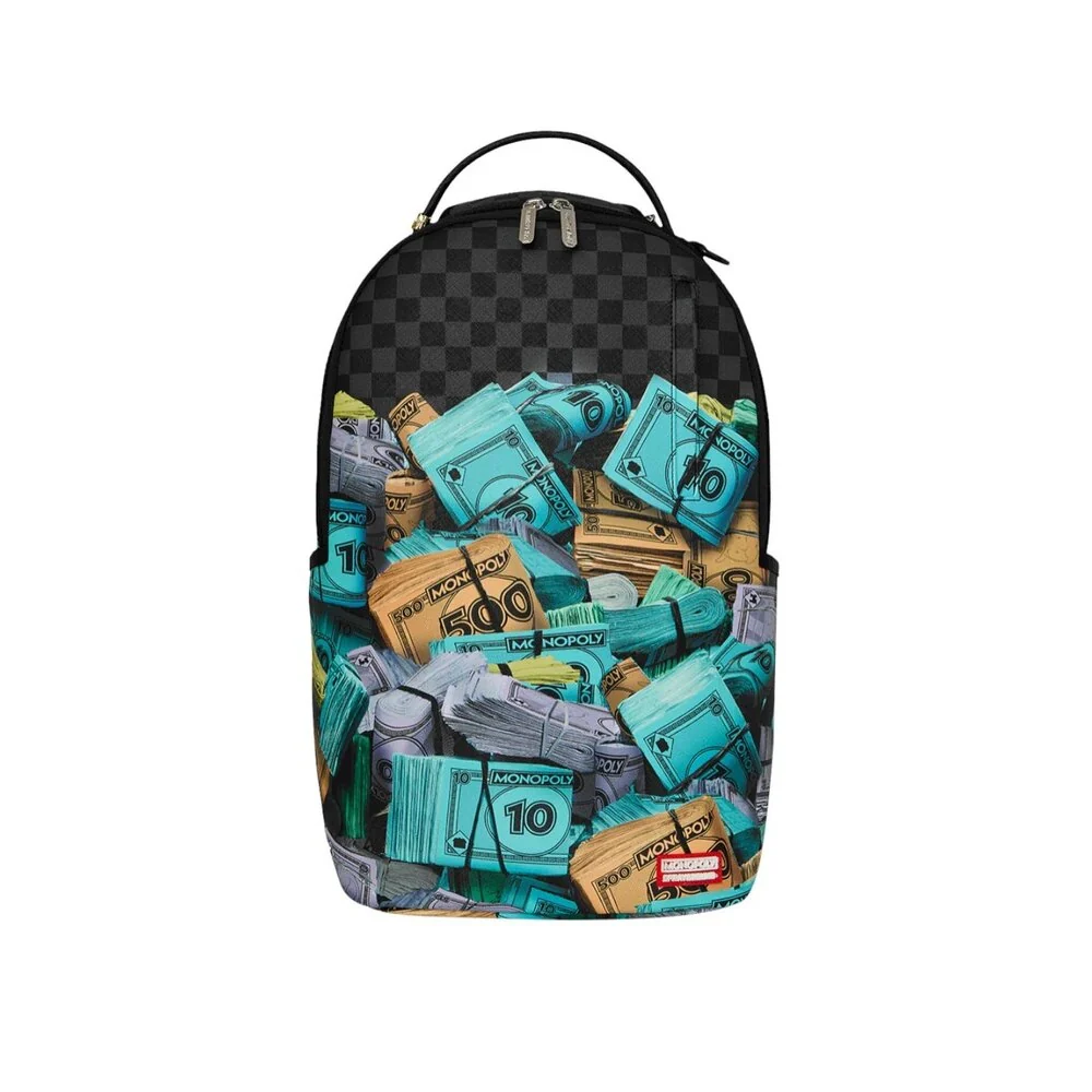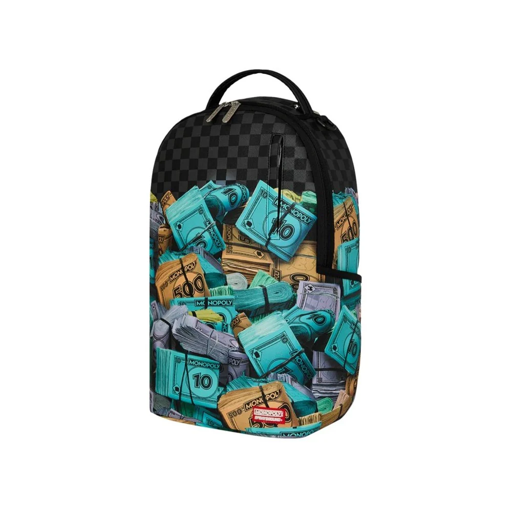Zaino Sprayground Monopoly Money Stacks con design audace e funzionalità. Dotato di tasca frontale con cerniera, tasche laterali e scomparto dedicato per occhiali da sole. Lo scomparto separato in velluto protegge il tuo laptop, mentre la tasca organizer in rete mantiene gli accessori in ordine. Imbottitura posteriore ergonomica in rete garantisce comfort durante il trasporto. Cinghie regolabili e cerniere con ferramenta in metallo assicurano durabilità. Distintivo in metallo Sprayground Authentic completa il design. Perfetto per scuola, lavoro e avventure quotidiane.