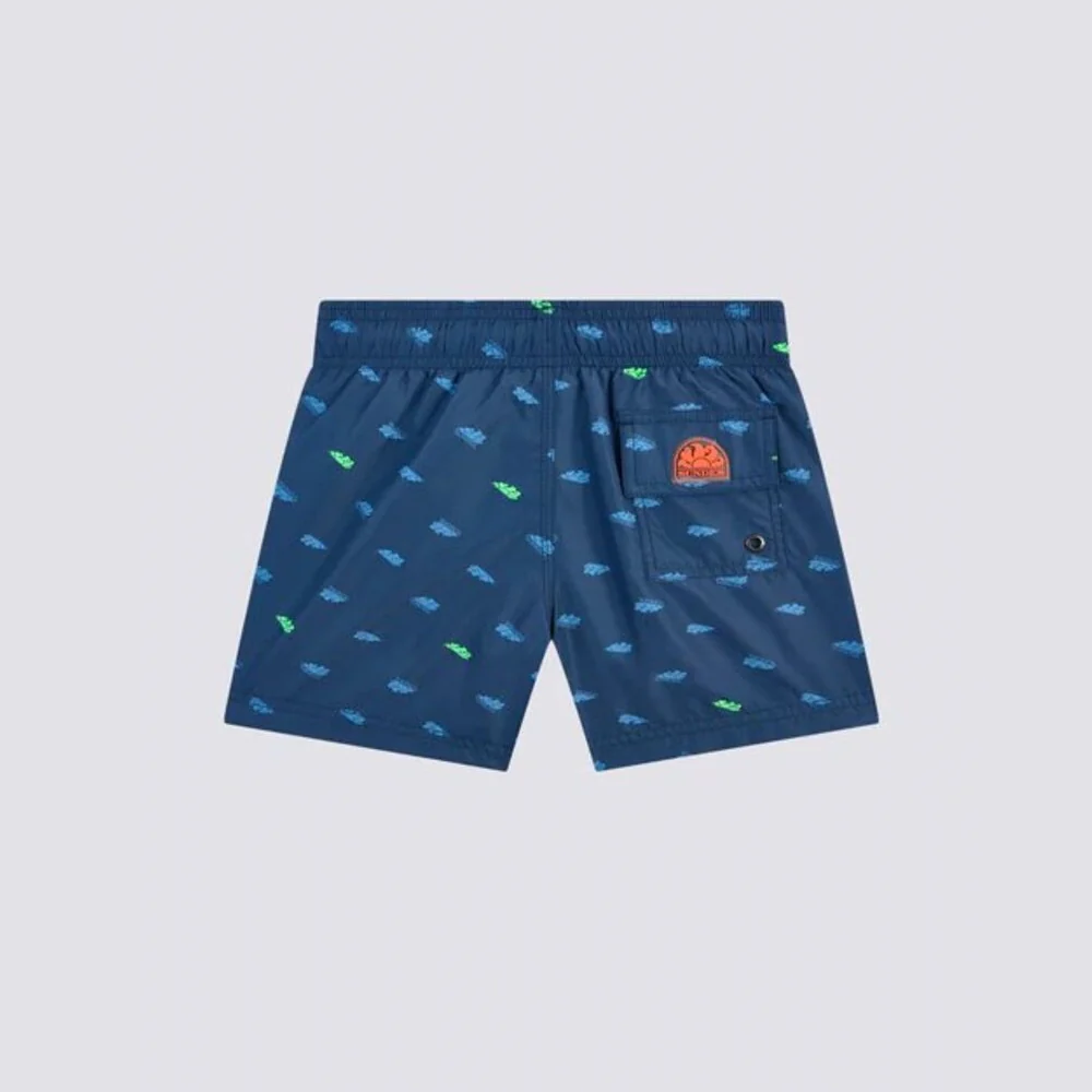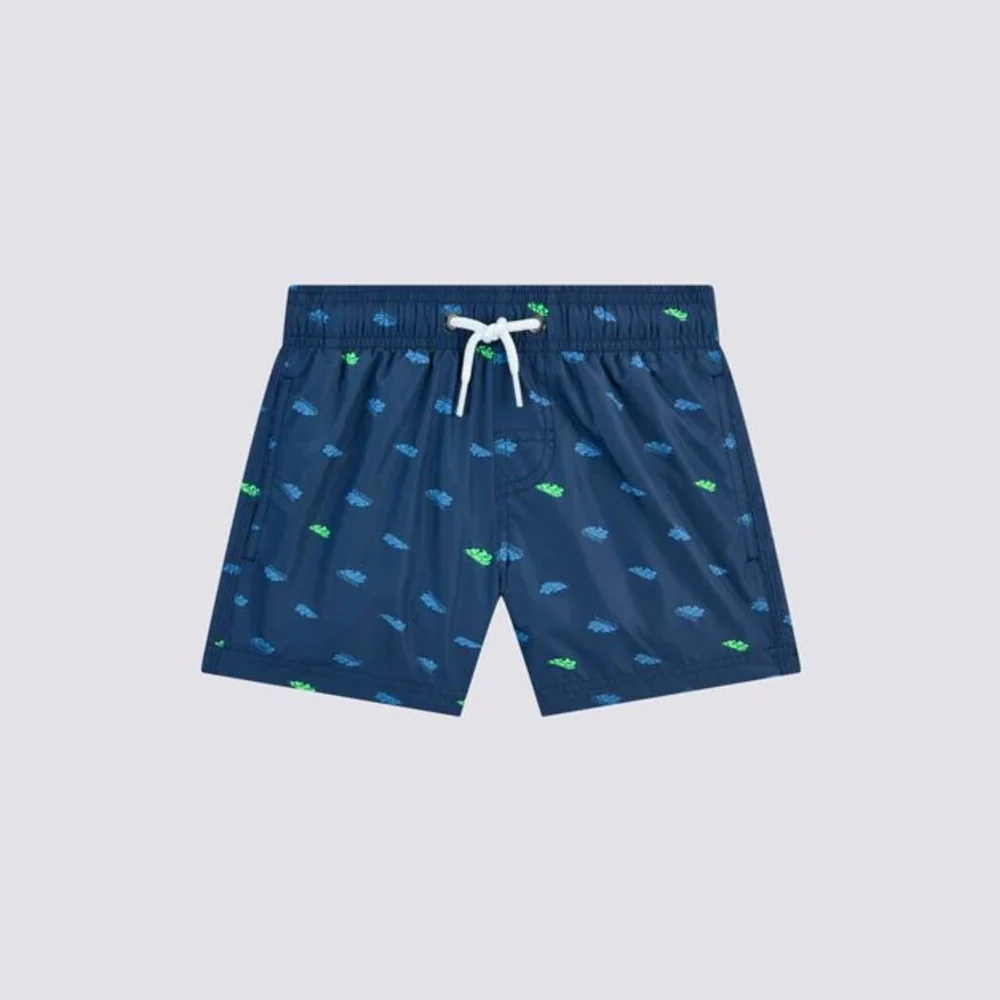 Questo costume corto da bambino presenta una stampa Monogram e una vita elasticata per la massima aderenza e comfort. Realizzato in poliestere riciclato leggero, è dotato di coulisse regolabile e elastico in vita.
