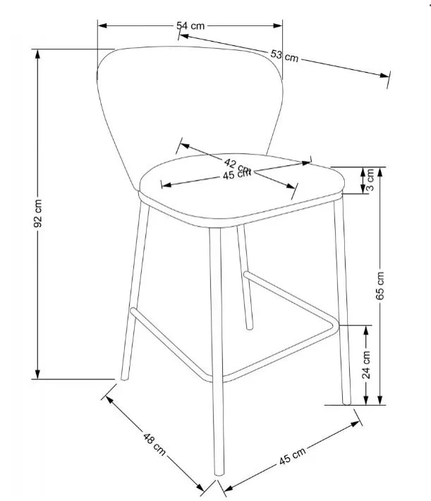 Altura de 65 cm: La altura de este taburete es óptima para su uso en barras o mesas altas, proporcionando comodidad y accesibilidad.