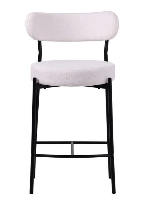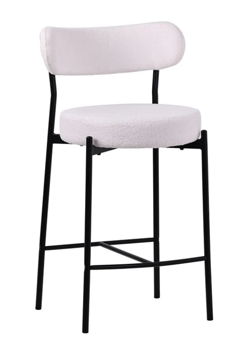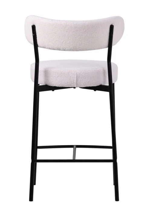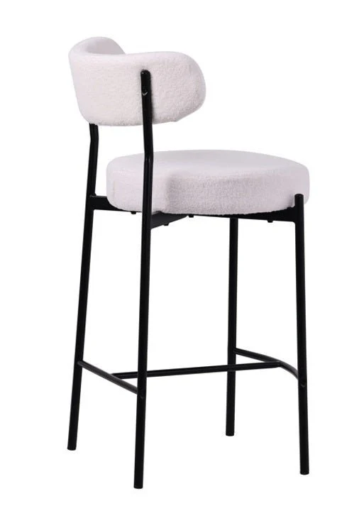 El taburete nórdico h65 cm boucle cuenta con una estructura de acero con recubrimiento en polvo y un acolchado de alta densidad de espuma, ofreciendo un respaldo ergonómico. Además, el tapizado en bouclé brinda un toque elegante y cómodo.