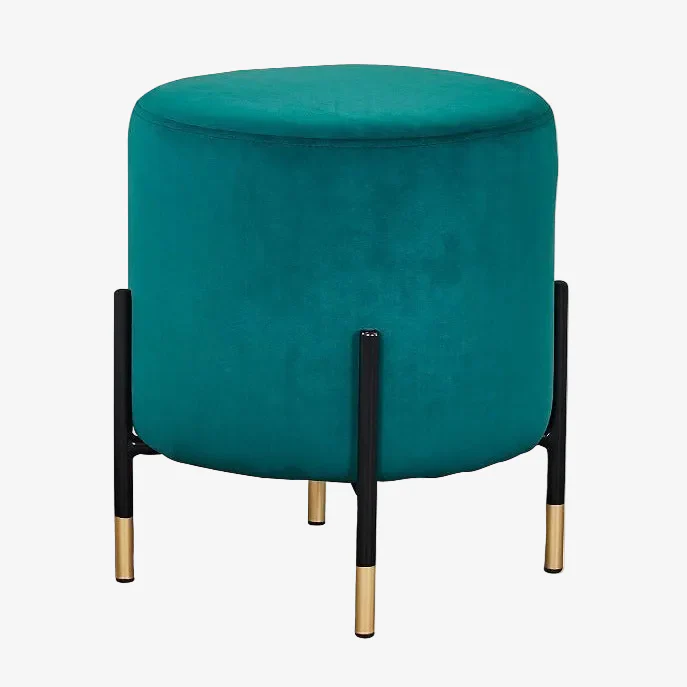 Los materiales como el terciopelo y el acero lacado en color oro, ambos de alta calidad, y la forma sutil y redondeada de este taburete bajo hacen que se conviertan en el protagonista de cualquier estancia en la que se coloque, dando un toque de color único a tu hogar / local.