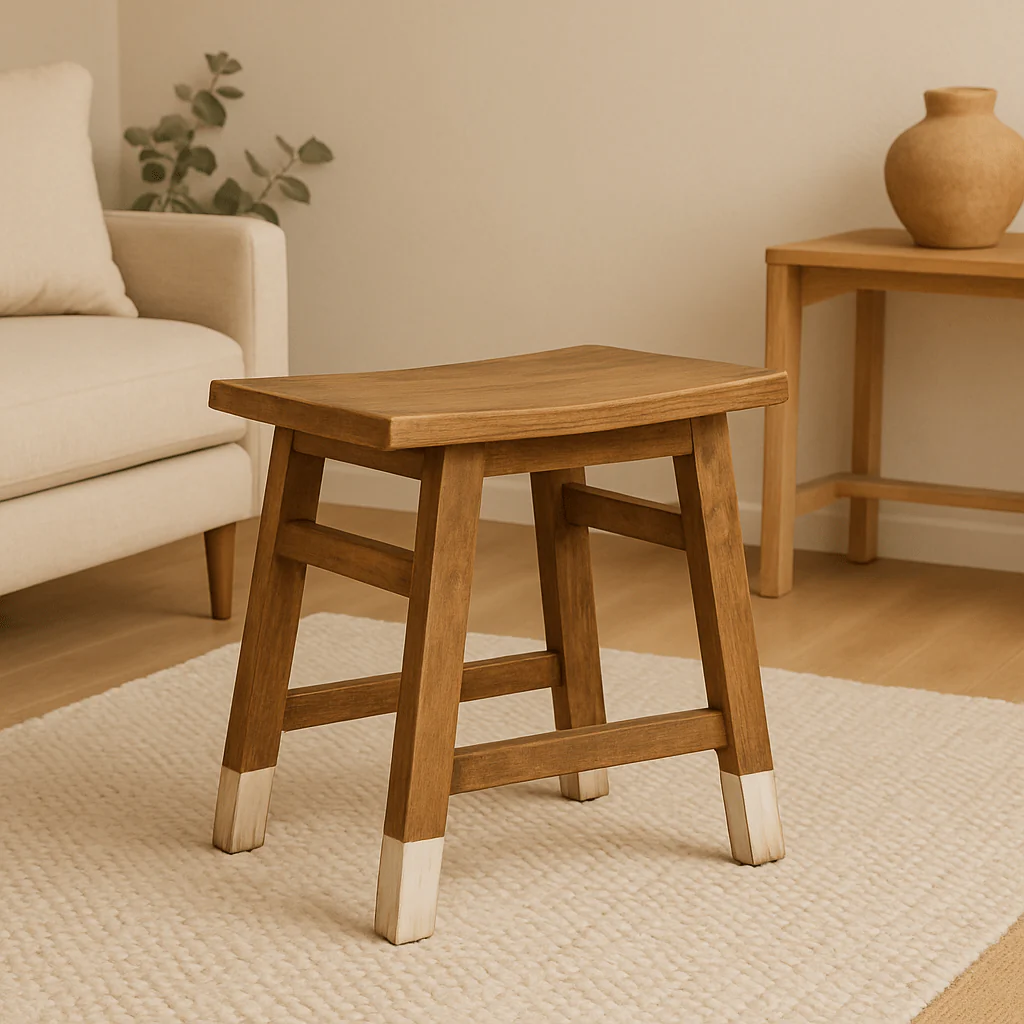 Este taburete rústico de madera natural es perfecto para complementar cualquier decoración de estilo rústico, tradicional o moderno, ya sea en la cocina, el comedor, la sala de estar o cualquier otro espacio de la casa.